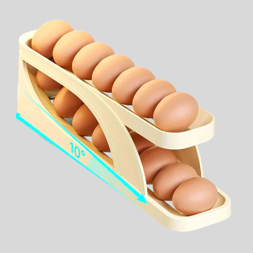 Automatic roll-down egg storage, holds 15 eggs, compact design, easy to clean.